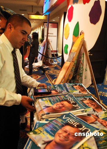 世界最大的消費(fèi)電子產(chǎn)品展一月七日在美國(guó)拉斯維加斯開(kāi)幕前,以雅虎總裁楊致遠(yuǎn)做封面的《視覺(jué)》雜志在新聞中心十分醒目。中新社發(fā) 賈國(guó)榮 攝