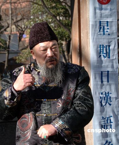 1月27日,東京星期日漢語角舉行第24次交流會,邀請正在日本訪問的中國著名國畫大師安云霽教授進(jìn)行演講和座談。安云霽不僅介紹了中國的文化藝術(shù),還就中日文化交流、北京奧運會等話題進(jìn)行了深入淺出的演講。安云霽的滿口京腔以及充滿中華民族色彩的服裝,吸引了參加漢語角的日本朋友,多次贏得熱烈的鐘掌聲。中新社發(fā) 段躍中 攝