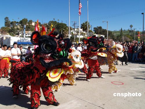 當(dāng)?shù)貢r(shí)間2月7日,大年初一清早,洛杉磯中國(guó)城越華會(huì)僑團(tuán)舉行新年團(tuán)拜,并以舞獅舞龍,燃放爆竹拉開(kāi)新春第一天序幕,吸引上千來(lái)自越南的華人華僑共襄盛舉。中新社發(fā) 盧威 攝