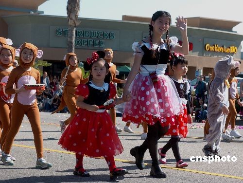 美國洛杉磯東部阿市圣市聯(lián)合舉辦迎春花車游行