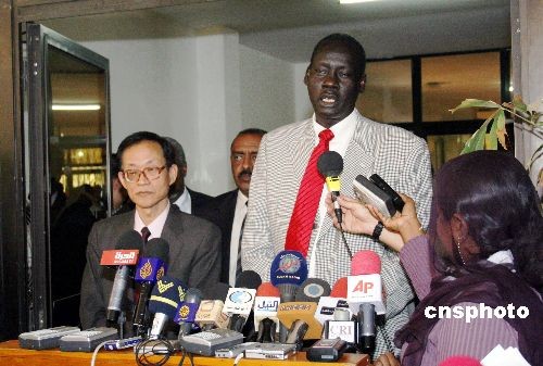 圖:蘇丹外長(zhǎng)與中國(guó)達(dá)爾富爾問(wèn)題特別代表會(huì)見(jiàn)記者
