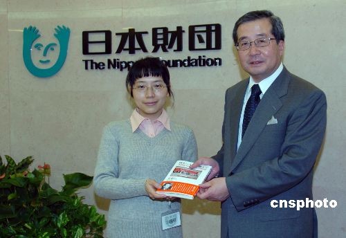 應(yīng)主辦方日本僑報(bào)社日中交流研究所的邀請(qǐng),第三屆中國(guó)人日語(yǔ)作文比賽最優(yōu)秀獎(jiǎng)得主——暨南大學(xué)日語(yǔ)系學(xué)生陳歆馨3月24日開(kāi)始訪問(wèn)日本。25日下午,陳歆馨在日本僑報(bào)社社長(zhǎng)張景子的陪同下,拜訪了作文比賽特別贊助者日本財(cái)團(tuán)。日本財(cái)團(tuán)理事長(zhǎng)尾形武壽鼓勵(lì)陳歆馨再接再厲,為中日友好作貢獻(xiàn)。據(jù)介紹,陳歆馨是在1400多名名參賽者中脫穎而出榮獲最優(yōu)秀獎(jiǎng)的。中新社發(fā) 段躍中 攝