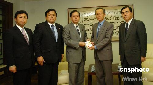 5月13日下午,日本執(zhí)政黨之一的公明黨黨首太田昭宏來到中國駐日使館向四川地震災(zāi)區(qū)捐贈(zèng)五十萬日元善款。中國駐日大使崔天凱、公使孔鉉佑代表中國政府接受了公明黨的捐贈(zèng)。中新社發(fā) 朱沿華 攝