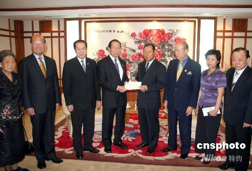 中國四川省發(fā)生強(qiáng)烈地震的災(zāi)情一直令泰國的華人華僑社團(tuán)牽掛與關(guān)切。十四日上午,泰國八個(gè)華人華僑社團(tuán)及知名僑領(lǐng)紛紛前來中國駐泰國大使館,向地震災(zāi)區(qū)人民捐助款項(xiàng)共計(jì)一千零四十萬泰銖和一百萬元人民幣。中新社發(fā) 顧時(shí)宏 攝