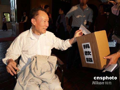 圖:美國一癱瘓華裔老人為四川災區(qū)捐款