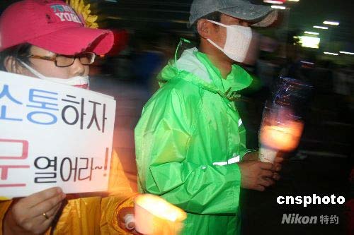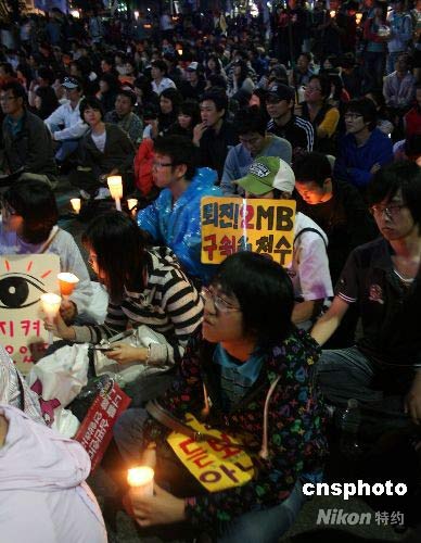 韓國(guó)民眾6月6日在在首爾市中心舉行了反對(duì)進(jìn)口美國(guó)牛肉的燭光集會(huì),警方和主辦方推算的集會(huì)群眾達(dá)到5.6萬(wàn)和20萬(wàn),是燭光集會(huì)開始以來規(guī)模最大的一次。中新社發(fā) vivi 攝