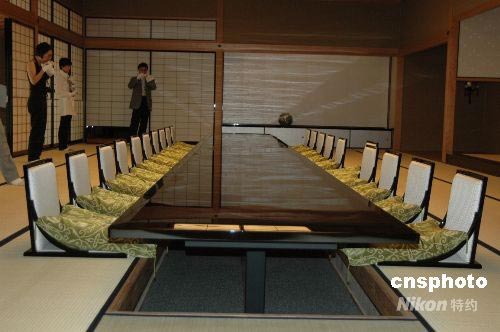 6月26日至27日將在京都迎賓館舉行“G8京都外長(zhǎng)會(huì)議”,位于京都市中心上京區(qū)京都御所旁的京都迎賓館內(nèi)部已裝飾一新。這次會(huì)議與5月底和6月中旬召開的“G8神戶環(huán)境部長(zhǎng)會(huì)議”、“G8大阪財(cái)長(zhǎng)會(huì)議”一起,屬于北海道洞爺湖G8峰會(huì)的準(zhǔn)備會(huì)議。該賓館占地約兩萬平方米,是京都御苑的一部分。御苑曾經(jīng)是皇宮的所在地。中新社發(fā) 關(guān)妍 攝