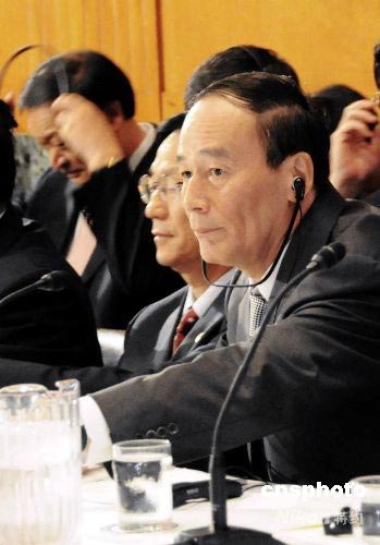 當(dāng)?shù)貢r(shí)間六月十九日上午,中國國務(wù)院副總理王岐山率領(lǐng)剛出席中美第四次戰(zhàn)略經(jīng)濟(jì)對(duì)話的多名中國部長前往美國國會(huì)山,會(huì)見了參議院財(cái)委會(huì)主席麥克斯·鮑卡斯等參議員。圖為王岐山同美國國會(huì)參議院財(cái)委會(huì)主席與麥克斯·鮑卡斯等參議員就諸多共同關(guān)心的問題交換看法。中新社發(fā) 邱江波 攝