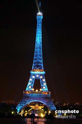 圖:巴黎埃菲爾鐵塔披上“歐盟裝”