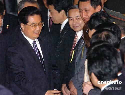 7月7日晚當(dāng)?shù)貢r間8點30分,中國國家主席胡錦濤乘專機抵達日本札幌新千歲機場。日本外務(wù)省儀典長楠本祐一、北海道知事高橋春美、中國駐日大使崔天凱及當(dāng)?shù)厝A人華僑百余人到機場歡迎胡錦濤的到來。胡錦濤主席將出席定于9日在洞爺湖舉行的八國集團同發(fā)展中國家領(lǐng)導(dǎo)人對話會議。與會期間的主要活動包括:出席中國、印度、巴西、南非、墨西哥發(fā)展中五國領(lǐng)導(dǎo)人集體會晤;出席八國集團與發(fā)展中五國領(lǐng)導(dǎo)人會議;出席經(jīng)濟大國能源安全和氣候變化領(lǐng)導(dǎo)人會議;出席會議的工作午餐會。會議期間,胡錦濤還將會見與會的有關(guān)國家領(lǐng)導(dǎo)人,就雙邊關(guān)系及共同關(guān)心的國際問題交換意見。中新社發(fā) 朱沿華 攝