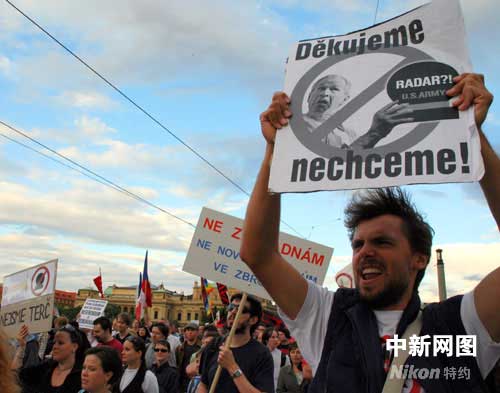 捷克民眾抗議與美國簽署反導雷達基地協(xié)定