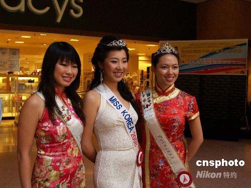 7月22日,2008年洛杉磯華埠小姐和韓國(guó)小姐亮相歡樂家庭賀中秋暨中美文化藝術(shù)節(jié)。中新社發(fā) 盧威 攝