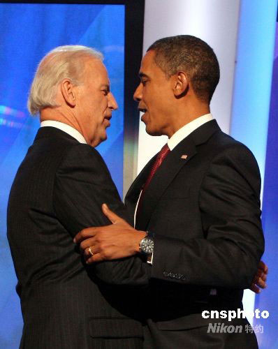 當?shù)貢r間8月27日,美國民主黨全國代表大會正式提名伊利諾伊國會參議員奧巴馬和特拉華州國會參議員拜登為總統(tǒng)、副總統(tǒng)候選人。中新社發(fā) 李靜 攝