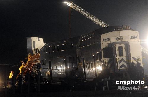 美國(guó)洛杉磯近郊當(dāng)?shù)貢r(shí)間九月十二日下午發(fā)生一起客運(yùn)列車(chē)與貨運(yùn)列車(chē)相撞的嚴(yán)重事故,至少造成十人死亡,一百三十五人受傷。當(dāng)晚,救援人員仍在現(xiàn)場(chǎng)搜救,警方估計(jì)死亡人數(shù)很可能還會(huì)上升。中新社發(fā) 張煒 攝