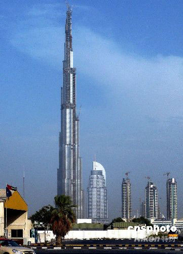 被稱譽為世界之最的--阿聯(lián)酋迪拜塔,目前的高度已超過688米。該塔于2004年9月動工,為防止競爭者超越其高度,有關(guān)公司一直將迪拜塔的最終高度作為商業(yè)機密而不予公布,外界的種種猜測也始終未得到公司的正面回應。據(jù)說,迪拜塔2008年至2009年完工后,包括尖塔在內(nèi)的高度將超過800米。另據(jù)當?shù)厝耸空f,該塔并不封頂,如世界其它國家再出現(xiàn)最高建筑,迪拜塔還會升高。中新社發(fā) 錢興強 攝