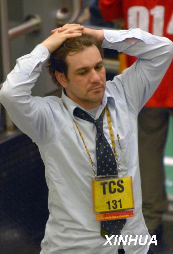 10月6日,一名交易人員在巴西圣保羅證券交易所里無奈地抱著頭。圣保羅股市博維斯帕指數(shù)當天下跌幅度一度超過15%,“斷路器”機制兩次啟動,臨時停止股市交易,全天下跌5.43%,以42100.79點報收。這是自1997年10月28日以來,圣保羅股市首次在一天之內兩次啟動“斷路器”機制。
