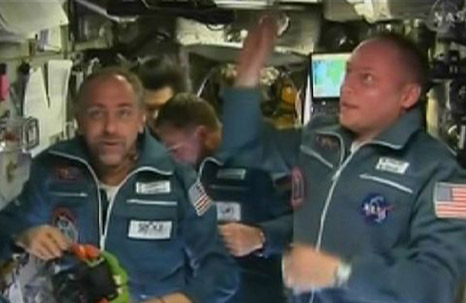 經(jīng)過兩天飛行,搭載美俄兩名宇航員和世界第六位太空游客的俄羅斯“聯(lián)盟TMA-13”載人飛船14日與國際空間站成功對接。 美國國家航空和航天局發(fā)布的這張照片顯示,10月14日,世界第六位太空游客、美國電腦游戲開發(fā)商理查德·加里奧特(左)和美國宇航員邁克·芬克到達國際太空站。