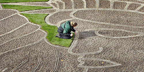 10月16日,在荷蘭利瑟著名的郁金香花園--庫肯霍夫公園,一名園丁用花球莖拼出自由女神像的圖形。這個(gè)自由女神像的拼接共使用了36000個(gè)花球莖,以此來慶祝荷蘭和紐約建立友好關(guān)系400年。