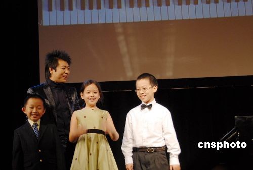 10月20日,美國錄音協(xié)會在紐約宣布任命中國青年鋼琴演奏家郎朗為格萊美中國文化大使。郎朗在免費(fèi)音樂會上宣布成立“郎朗國際音樂基金”,鼓勵(lì)更多青少年接觸古典音樂,發(fā)掘更多音樂人才。圖為郎朗和首批獲得基金會獎學(xué)金的少年同臺獻(xiàn)藝。中新社發(fā) 李靜 攝