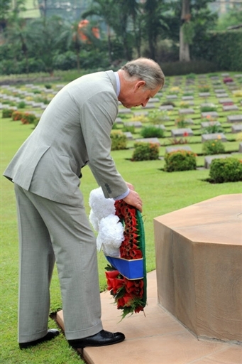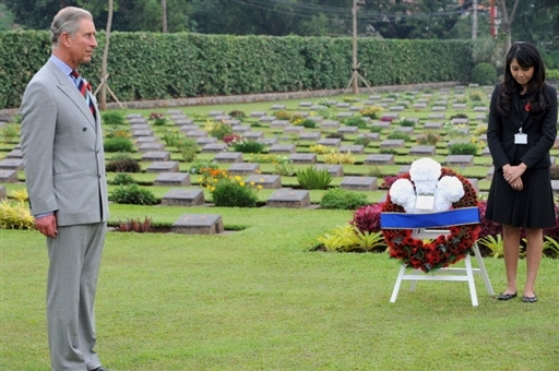 英國(guó)王儲(chǔ)查爾斯訪(fǎng)問(wèn)印尼,并向二戰(zhàn)中陣亡的反法西斯戰(zhàn)士墓敬獻(xiàn)花圈。