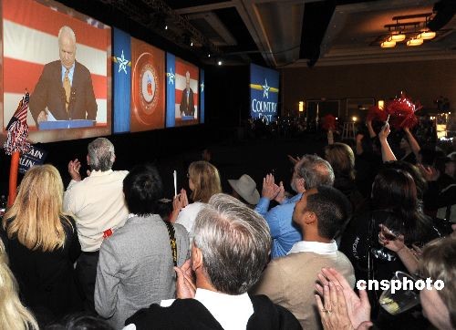 當(dāng)?shù)貢r間十一日四日晚,麥凱恩在鳳凰城宣布敗選,現(xiàn)場支持者多數(shù)平靜面對現(xiàn)實,但一些女性支持者難掩失望和傷心,不禁當(dāng)眾潸然淚下。中新社發(fā) 張煒 攝