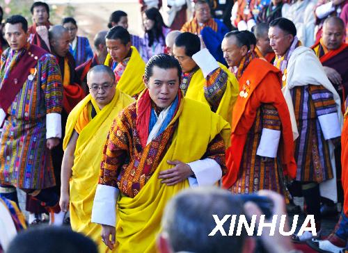 11月6日,不丹第五世國(guó)王吉格梅·凱薩爾·納姆耶爾·旺楚克的加冕大禮在廷布舉行。吉格梅·凱薩爾·納姆耶爾·旺楚克國(guó)王現(xiàn)年28歲,曾在美國(guó)和英國(guó)學(xué)習(xí),并獲得牛津大學(xué)政治學(xué)碩士學(xué)位。在正式從父親手中接過(guò)王冠之后,他成為了當(dāng)今世界上最年輕的國(guó)王。新華社記者王曄攝