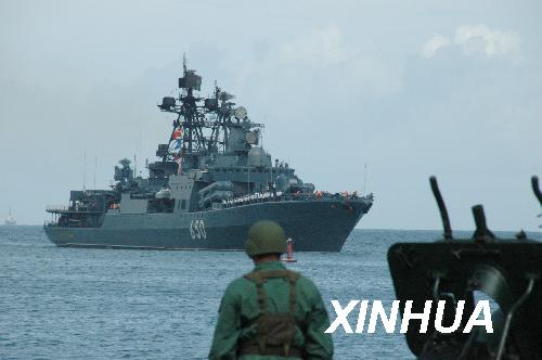 11月25日,俄羅斯“恰巴年科海軍上將”號(hào)大型反潛艦駛?cè)胛瘍?nèi)瑞拉北部港口拉瓜伊拉。俄羅斯總統(tǒng)梅德韋杰夫訪問(wèn)委內(nèi)瑞拉前夕,四艘軍艦組成的俄羅斯北方艦隊(duì)艦艇編隊(duì)25日抵達(dá)拉瓜伊拉,準(zhǔn)備參加與委內(nèi)瑞拉海軍從12月1日開(kāi)始的聯(lián)合軍事演習(xí)。新華社記者張笑然攝