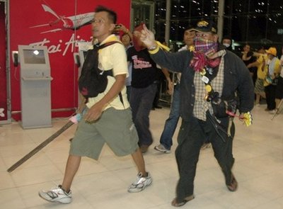泰國反政府的人民民主聯(lián)盟(民盟)25日繼續(xù)在曼谷舉行大規(guī)模示威活動,示威者堵塞通往曼谷國際機(jī)場的高速公路并沖入機(jī)場大樓。最新消息指稱,機(jī)場已于晚間被迫關(guān)閉,航班全部取消。