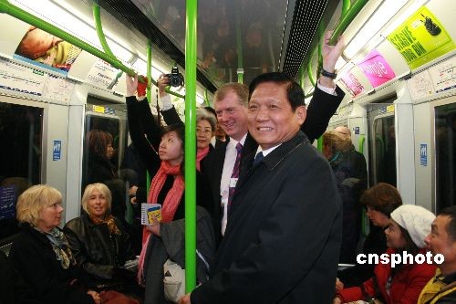當(dāng)?shù)貢r(shí)間28日上午,中共中央政治局委員、北京市委書記、北京奧組委主席劉淇在倫敦地鐵公司參觀考察。中新社發(fā) 李鵬 攝
