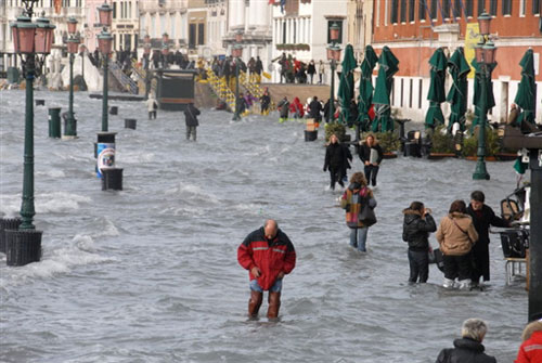 12月1日,由于海水上升,威尼斯城幾乎所有街道都被海水淹沒(méi),圣馬可廣場(chǎng)上的水深達(dá)80厘米。威尼斯當(dāng)局發(fā)出警報(bào),稱海水可能要比正常水位上升1.6米,水城威尼斯真的變成了“水城”。