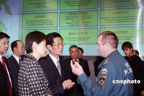 12月23日,中國駐俄羅斯大使劉古昌在俄羅斯緊急救災(zāi)部為98名俄赴華抗震救災(zāi)人員頒發(fā)“抗震救災(zāi)紀(jì)念章”。頒獎(jiǎng)儀式前,劉古昌應(yīng)邀參觀了俄緊急救災(zāi)部危機(jī)管理指揮中心,并對(duì)該指揮中心的工作和現(xiàn)代化管理指揮系統(tǒng)給予高度評(píng)價(jià)。中新社發(fā) 田冰 攝