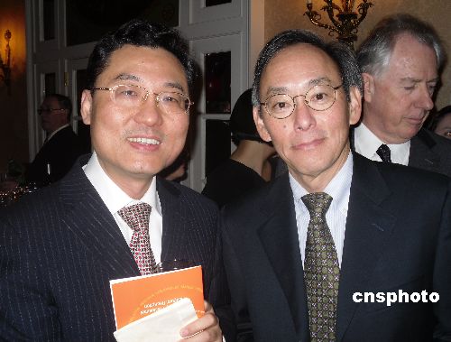 1月17日晚,即將就任美國(guó)能源部長(zhǎng)的華裔科學(xué)家朱棣文與夫人一起出席美國(guó)亞洲協(xié)會(huì)慶祝奧巴馬就職晚會(huì)。中新社發(fā) yudonghui 攝