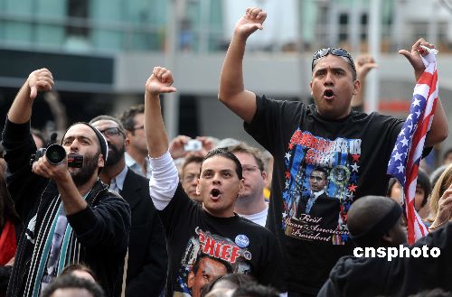 當(dāng)?shù)貢r間一月二十日清晨,兩千多名洛杉磯市民聚集在洛杉磯動感廣場(LA LIVE),通過大屏幕觀看美國第四十四任總統(tǒng)奧巴馬就職儀式。當(dāng)電視畫面出現(xiàn)卸任總統(tǒng)布什時,人群中發(fā)出噓聲,一些奧巴馬支持者向布什表達(dá)不滿。