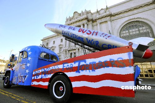 圖:奧巴馬支持者向卸任總統(tǒng)布什表達(dá)不滿