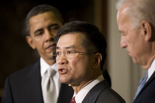 美國(guó)總統(tǒng)奧巴馬25日在白宮提名前華盛頓州華裔州長(zhǎng)駱家輝為商務(wù)部長(zhǎng)人選。現(xiàn)年59歲的駱家輝是美國(guó)歷史上第一位華裔州長(zhǎng)。他于1996年競(jìng)選華盛頓州州長(zhǎng)獲勝,于2000年獲得連任。