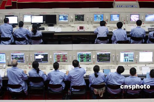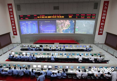 十月二十四日下午,北京航天飛行控制中心工作人員在做嫦娥一號衛(wèi)星發(fā)射前的最后準備。中國首顆月球探測衛(wèi)星——嫦娥一號發(fā)射工作已經準備就緒,計劃于當日十八點零五分發(fā)射。中新社發(fā) 毛建軍 攝
