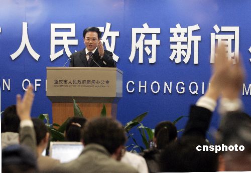 11月15日,重慶市人民政府舉行首場自主新聞發(fā)布會,就三峽移民、交通改造和建設(shè)、醫(yī)療保險、物價上漲、城鄉(xiāng)統(tǒng)籌試驗區(qū)等當?shù)厥忻窈蛧鴥?nèi)外媒體關(guān)注的問題進行回答。重慶市是繼上海市后第二個舉行自主新聞發(fā)布會的中國城市。據(jù)悉,重慶自主新聞發(fā)布會目前暫定每月一次,定為每個月的第二個星期四下午舉行。中新社發(fā) 郭晉嘉 攝