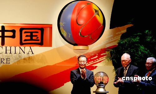 在新加坡內(nèi)閣資政李光耀的倡議和帶動(dòng)下,新加坡中華總商會(huì)成立了“通商中國(guó)”組織,致力搭建促進(jìn)中新兩國(guó)文化和工商界交流的務(wù)實(shí)新平臺(tái)。對(duì)此新舉,中國(guó)也給予了積極回應(yīng)。中國(guó)國(guó)務(wù)院總理溫家寶十九日在新加坡大學(xué)演講時(shí)表示,中國(guó)希望“通商中國(guó)”為中新關(guān)系發(fā)展開創(chuàng)新的天地。圖為溫家寶總理在演講前,與新加坡內(nèi)閣資政李光耀共同參與“通商中國(guó)”啟動(dòng)儀式。中新社發(fā) 周群 攝