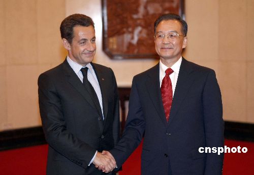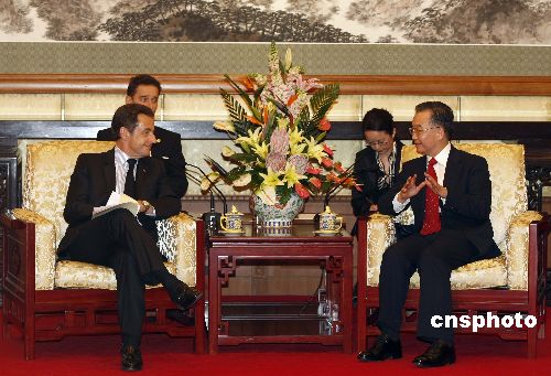 十一月二十六日,中國國務(wù)院總理溫家寶在北京釣魚臺國賓館會見來訪的法國總統(tǒng)薩科奇。中新社發(fā) 盛佳鵬 攝