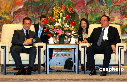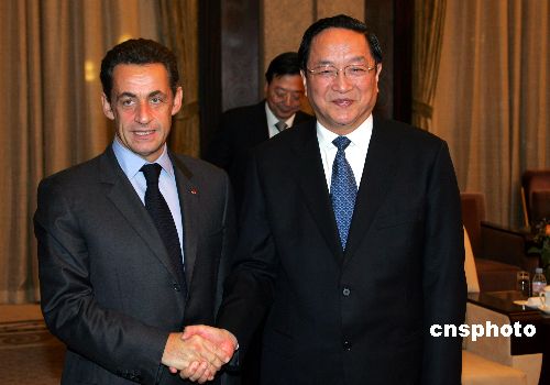 11月27日,中共中央政治局委員、中共上海市委書記俞正聲,在上海西郊賓館會(huì)見(jiàn)來(lái)華訪問(wèn)的法國(guó)總統(tǒng)尼古拉·薩科齊。中新社發(fā) 湯彥俊 攝