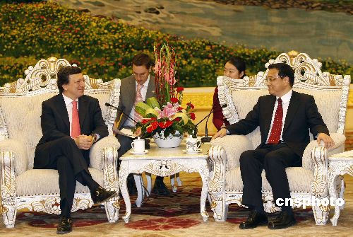十一月二十八日,中共中央政治局常委李克強在北京人民大會堂會見歐盟委員會主席巴羅佐。中新社發(fā) 盛佳鵬 攝