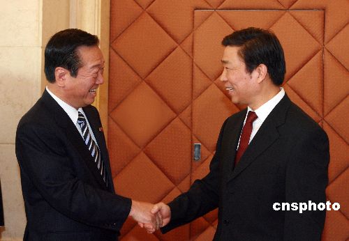 十二月七日,中共中央政治局委員、中央書記處書記、中央組織部部長李源潮在北京會見以黨首小澤一郎為團長的日本民主黨大型代表團。中新社發(fā) 廖文靜 攝