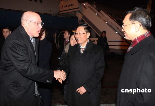 美國財長鮑爾森十二月十日深夜乘專機(jī)抵達(dá)北京,率領(lǐng)美國代表團(tuán)出席第三次中美戰(zhàn)略經(jīng)濟(jì)對話。中新社發(fā) 毛建軍 攝