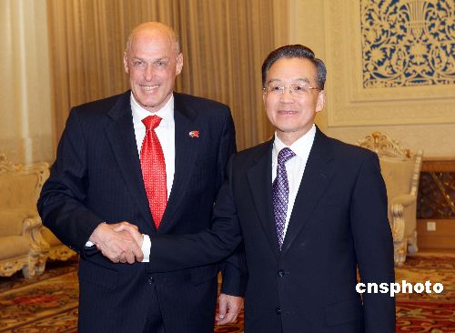 十二月十三日,北京人民大會(huì)堂,中國國務(wù)院總理溫家寶會(huì)見美國財(cái)政部長保爾森等出席第三次中美戰(zhàn)略經(jīng)濟(jì)對話的代表。中新社發(fā) 毛建軍 攝