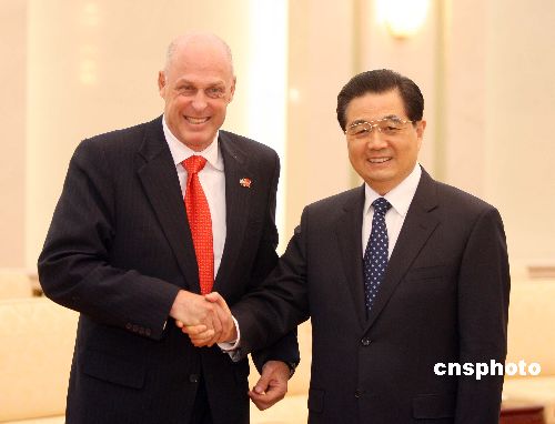 十二月十三日,北京人民大會(huì)堂,中國(guó)國(guó)家主席胡錦濤會(huì)見(jiàn)美國(guó)財(cái)政部長(zhǎng)保爾森等出席第三次中美戰(zhàn)略經(jīng)濟(jì)對(duì)話的代表。中新社發(fā) 毛建軍 攝