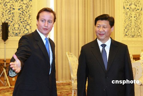 十二月十九日,中共中央政治局常委、書記處書記習近平在北京人民大會堂會見了由英國保守黨領袖戴維·卡梅倫率領的英國保守黨代表團。中新社發(fā) 廖文靜 攝