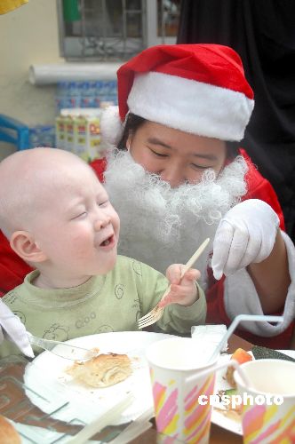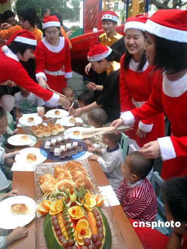 十二月二十一日,三亞凱萊度假酒店的圣誕天使們來到三亞福利院看望孤兒們,為他們送來食品和玩具。圣誕節(jié)將至,三亞一些企業(yè)或個人紛紛走進福利院奉獻愛心,與這里的孩子們共享圣誕節(jié)的快樂。中新社發(fā) 尹海明 攝