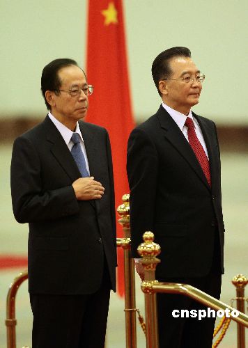 十二月二十八日,中國國務(wù)院總理溫家寶在北京人民大會堂舉行儀式歡迎日本首相福田康夫訪華。中新社發(fā) 盛佳鵬 攝