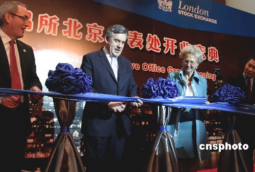 英首相布朗為倫交所北京代表處揭幕祝新年開(kāi)門(mén)紅