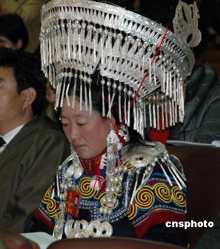 圖為少數(shù)民族代表在聽取報(bào)告。